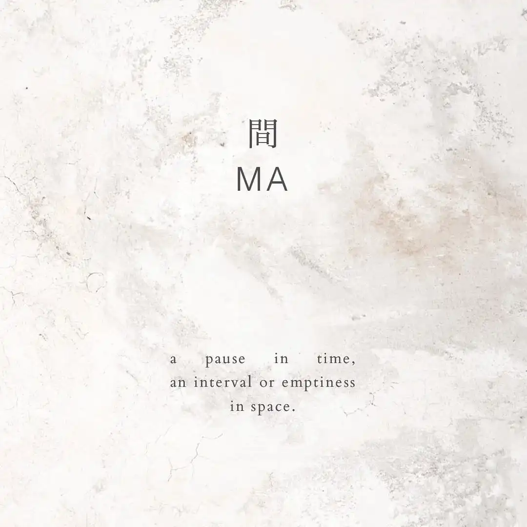 Di dunia barat atau modern keheningan atau jeda sering kali dianggap sebagai kekosongan yang canggung dan harus segera diisi dengan suara. Namun dalam konsep Jepang Ma (間) adalah elemen yang sangat vital. Ma berarti ruang atau jeda di antara dua hal.