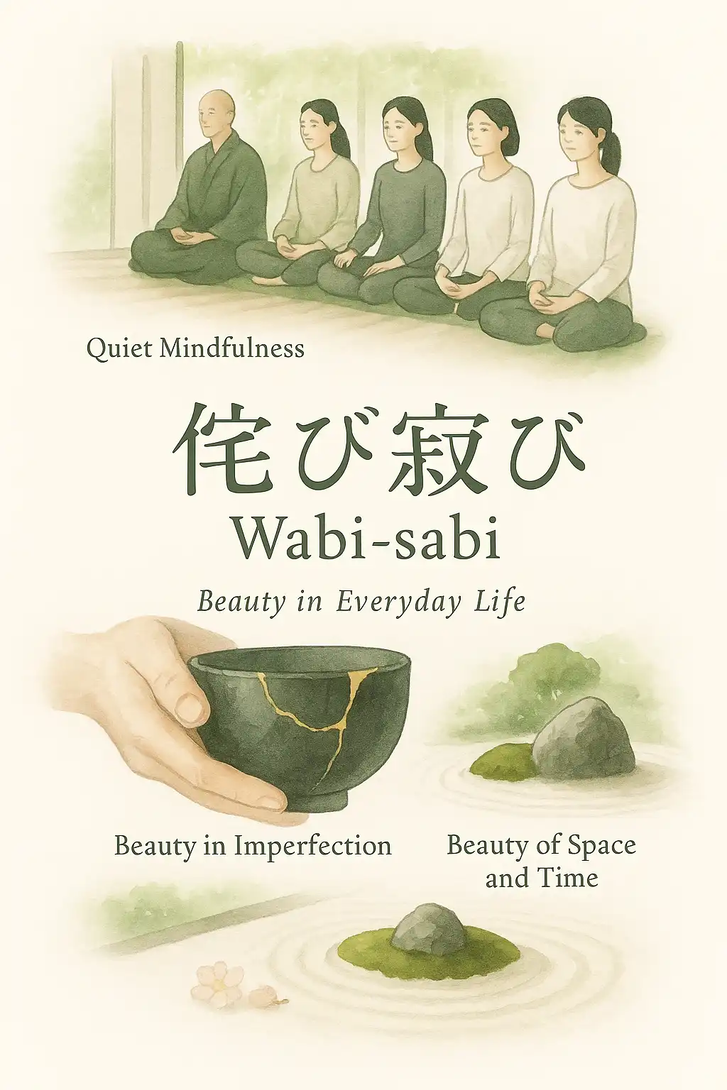 Alih alih berjuang mati matian mengejar kesempurnaan yang mustahil dan membuat stres Wabi Sabi mengajak kita menemukan keindahan yang sunyi dalam realitas tersebut. Cangkir teh yang retak dinding tua yang berlumut atau wajah yang mulai keriput memiliki keindahannya sendiri yang jujur dan autentik. Ini adalah jalan damai untuk berdamai dengan kekurangan diri proses penuaan dan siklus alami kehidupan.
