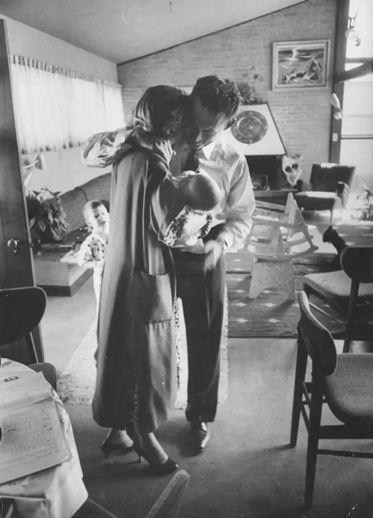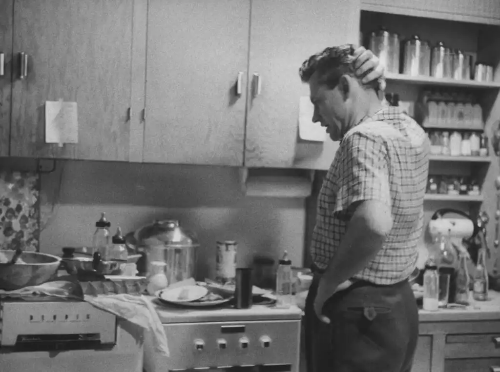 Sang Ibu akhirnya pulang setelah menghabiskan akhir pekan di luar kota, menyambut suaminya, Joe Gordon, dan anak-anak mereka (1956).