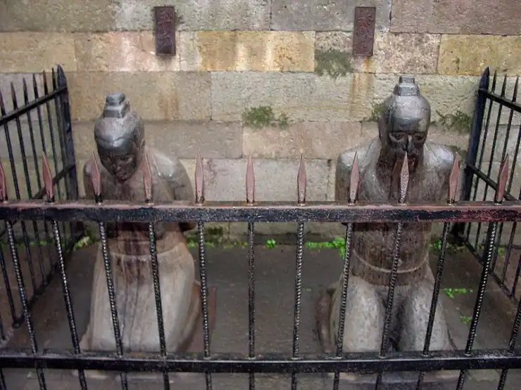 Patung Qin Hui dan istrinya di Kuil Yue Fei
